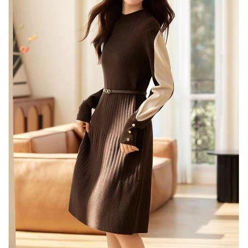[패션시그널]벨트포함 투톤슬리브 니트원피스 0E8C2F