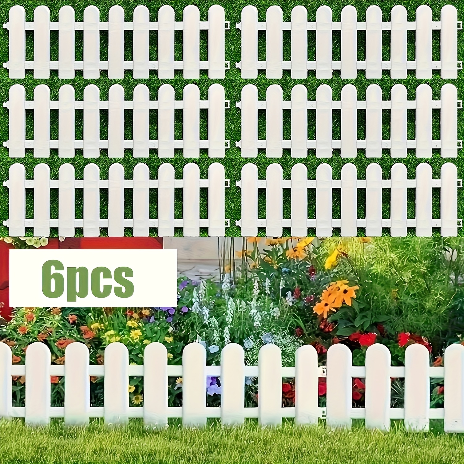TEMU 6개 정원 울타리 세트 (12개 접지 지지대 포함), 흰색 정원 울타리 세트 - 잔디밭, 화단 및 야외 장식을 위한 내후성 PVC 경계, 결혼식, 가정 안뜰 및 휴일 조경 (할로윈/크리스마스)에 적합, 야외 정원 울타리