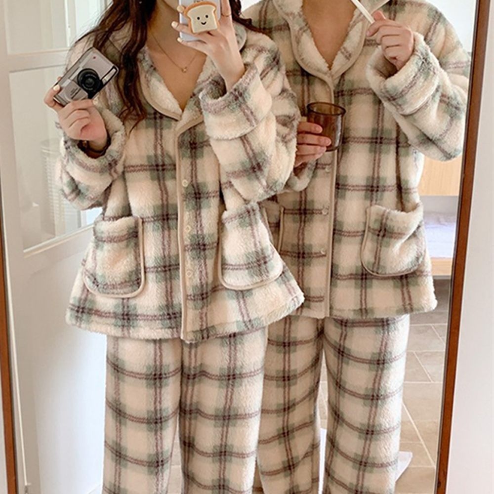 커플잠옷 노르딕 수면잠옷 극세사 겨울 남자 여자 파자마