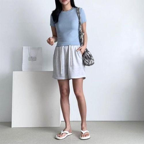 여자 반바지 트레이닝 운동복 4부 허리 밴딩 핫 팬츠