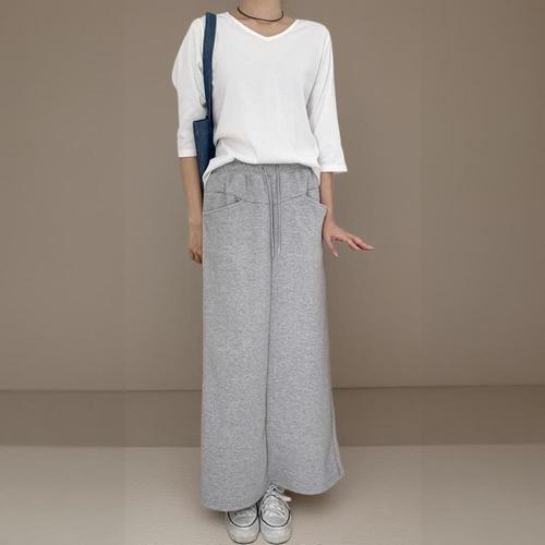 네모엔룩 여성용 쭈리밴딩롱 스트링끈 사이드포켓 트레이닝룩 뒤트임 코튼 롱 스커트 (기모타입추가)
