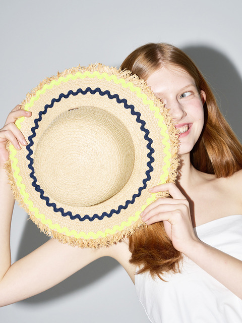 [에이컨] 라피아 웨이브 플로피햇_그린 오렌지