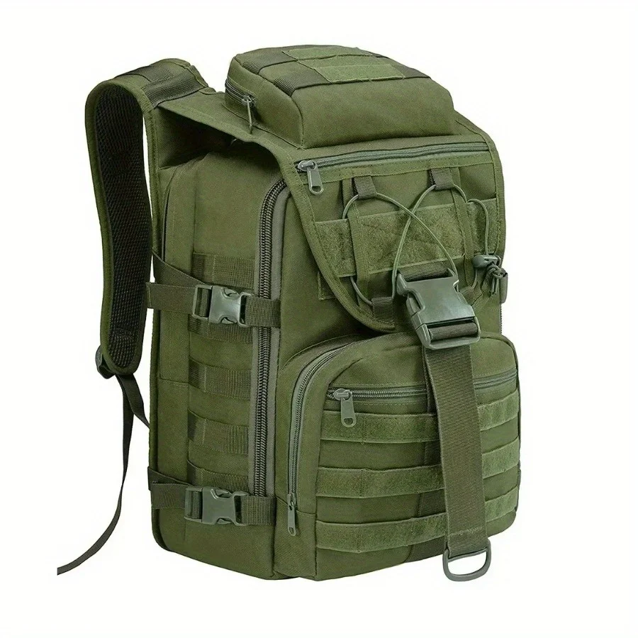 TEMU 1개 ITECHJOY 헤비듀티 낚시 & 캠핑 백팩, 야외용, 1개 내구성 폴리에스터 멀티컴파트먼트 낚시 장비 백팩, 강화된 어깨끈 & 패드, 지퍼 잠금, 낚싯대, 루어, 구급상자, 물병 수납 가능