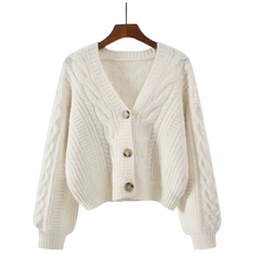 오스틱니 여성용 가을겨울용 솔리드 단추 있음 브이넥 니트 카디건