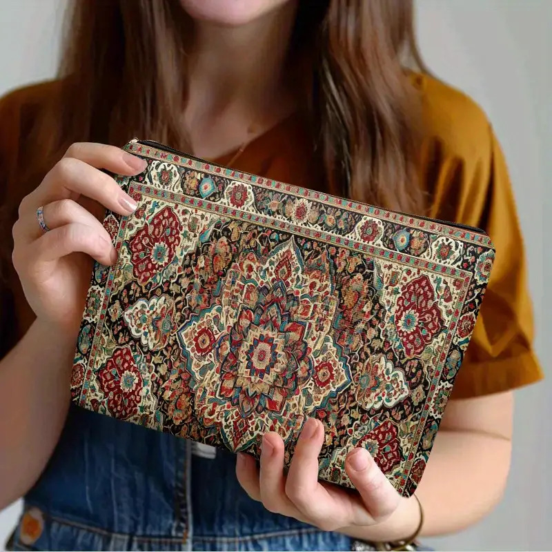 TEMU 1 레트로 에스닉 스타일 수납백, 정교한 패턴, 일상 소품 정리, 여행용 캐리어, 문학 애호가 추천, 레트로 스타일 애호가, 내구성 원단, 수납백 카테고리, 에스닉 스타일 히트
