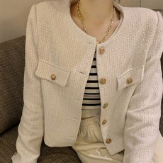 오스틱니 가을 트위드 자켓 중년 여성 샤이니라인 소향풍 노카라 아우터 재킷 숏코트 슬림핏 트렌드 아우터 봄 트위드 자켓