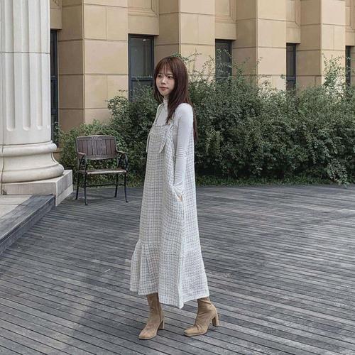 여성 트위드 민소매 원피스 캐주얼 봄 가을 나시 치마 루즈핏 소향풍 트위드 멜빵 모직 원피스 ZZL