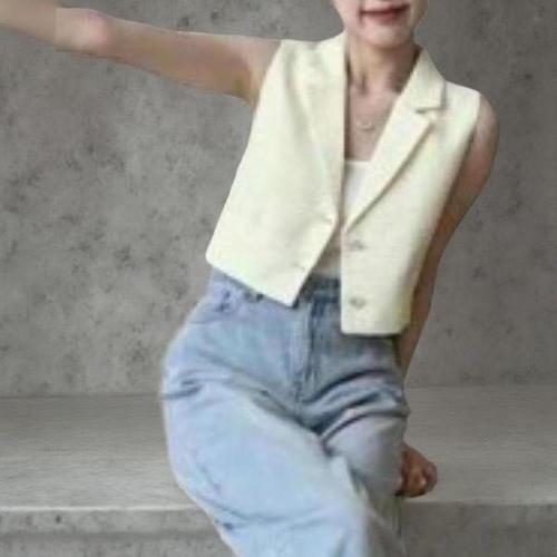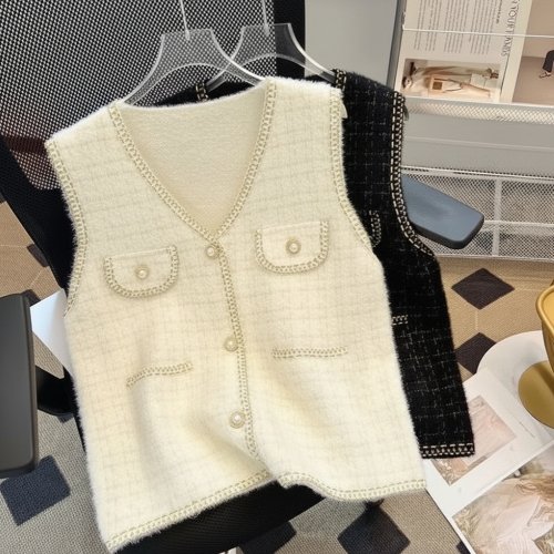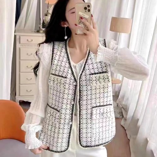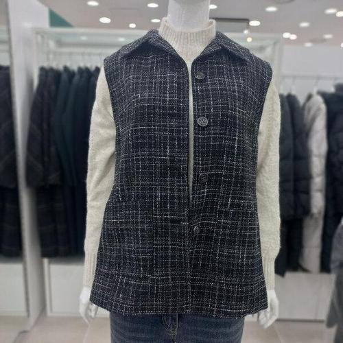 여성용 트위드 조끼 민소매 단추 베스트 Women's Vest