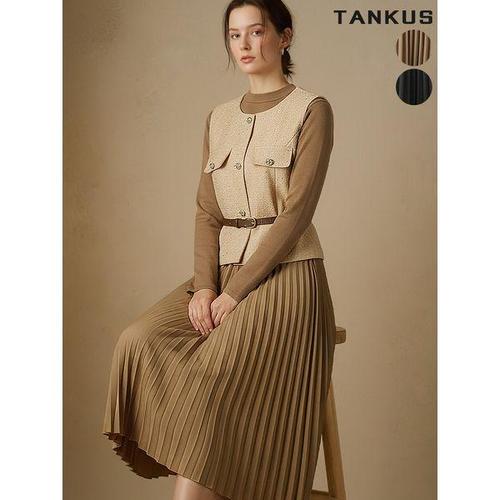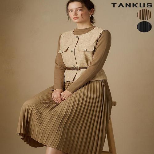[탱커스]여성 벨트 트위드 조끼 원피스 셋업