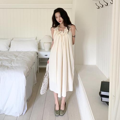[옷자락] 여자 여름 플라워 빈티지 셔링 프릴 롱원피스 잠옷