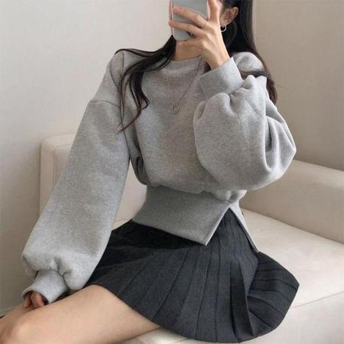 [다잇템_패션]여자 트임 박시핏 양기모 FW 벌룬 맨투맨
