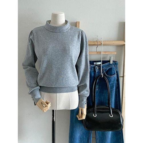 [샵앤]여성 반목 퍼프 트임소매 밴딩 긴팔 니트 티셔츠 DGB-WKN-4823-그레이