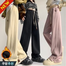 (완전 추천) 100kg까지 여성 기모 옆트임 하이웨이스트 드레이프 트레이닝 팬츠 가을 겨울 편한 캐쥬얼 시카고 빈티지 와이드 입체 날씬해보이는 디자인 모던 부드러운 플리스 바지