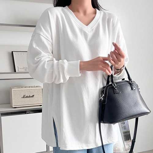 플러리싱 / 심플 브이넥 트임 긴팔 맨투맨 플러리싱