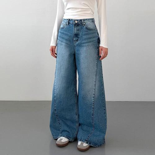 [신상오픈런]여성 사이드 트임 플레어 맥시 와이드 워싱 면 청바지