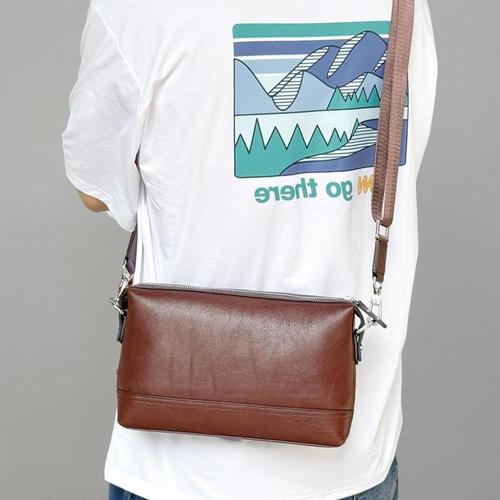[옷자락] 남성 튼튼한 가죽 지퍼 사각형 분리형 스트랩 클러치 크로스백