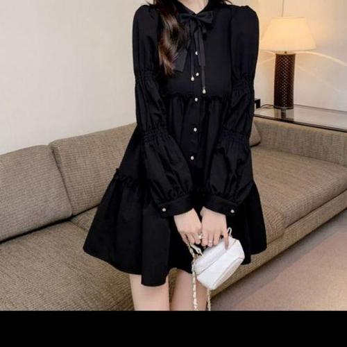 [에이치플러스몰]체크 블랙 리본 프릴 원피스 캉캉