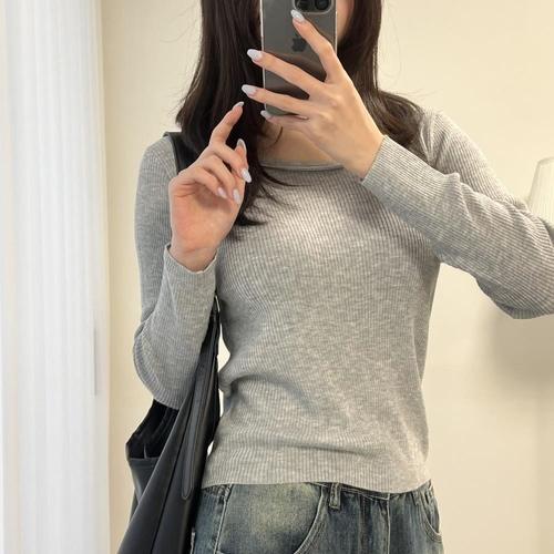 [기타브랜드]라운드넥 니트 티셔츠 심플하고 세련된 데일리 슬림핏
