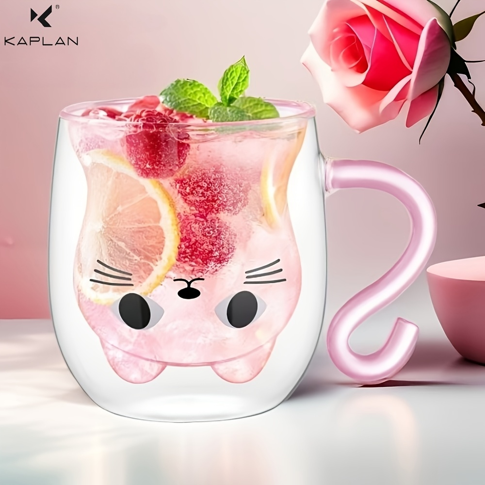 TEMU 여성을 위한 사랑스러운 고양이 테마 선물 1개, 고양이 디자인의 단열 유리 컵, 생일, 크리스마스, 발렌타인데이, 가장 친한 친구, 어머니, 딸, 선생님 및 고양이 애호가를 위한 선물로 완벽합니다. 에스프레소에 이상적입니다.