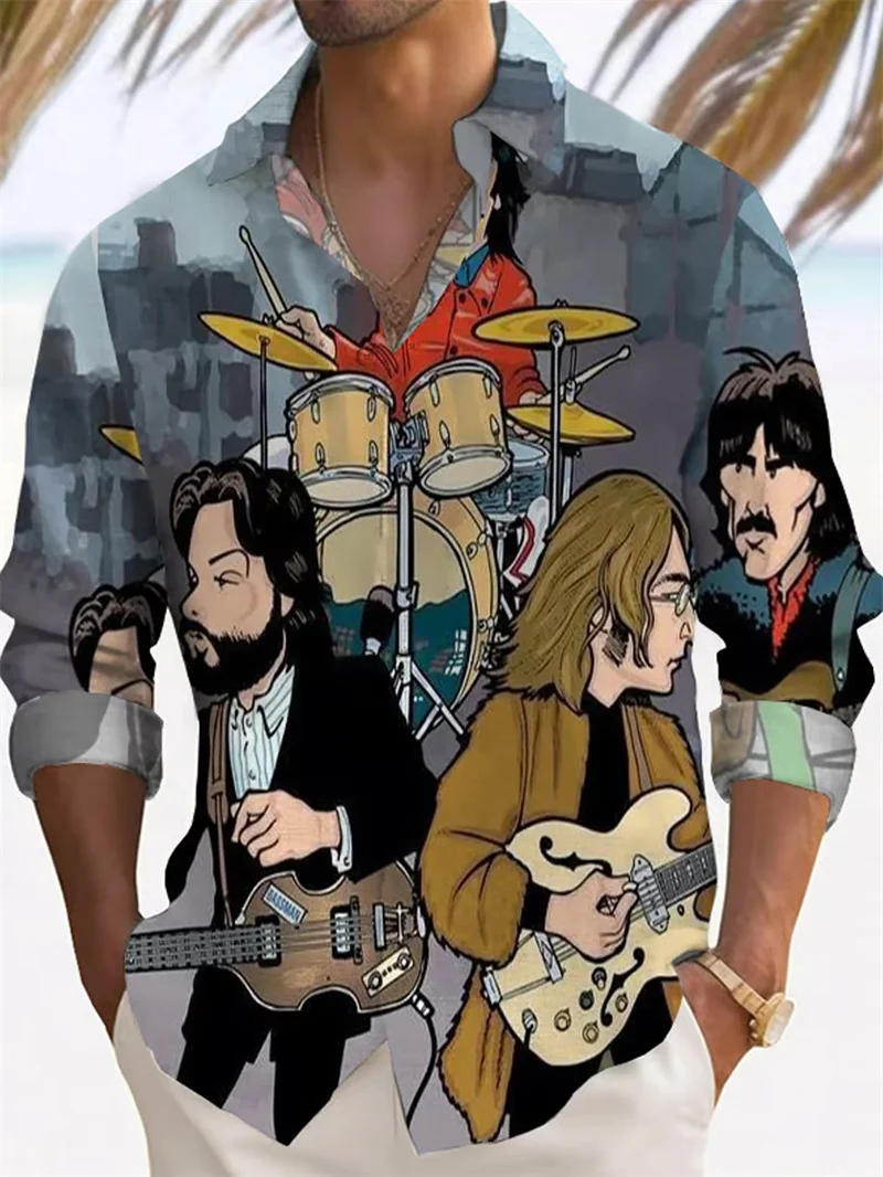 남성 셔츠 빈티지 캐릭터 프린트 2025 봄/가을 루즈 버전 클래식 긴팔 옷깃 패션 및 레저 탑 S-5XL
