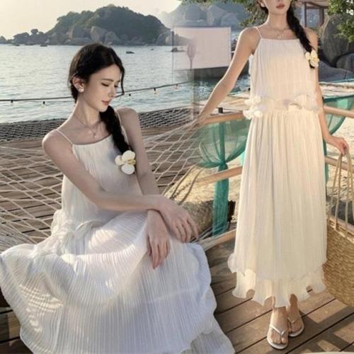 [다잇템][다잇템] 여성 티어드 치마 아코디언 롱 캐미 크림색 세트_20419327_588872
