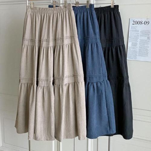 [다잇템]여자 티어드 귀여운 골덴치마 잔주름 롱스커트