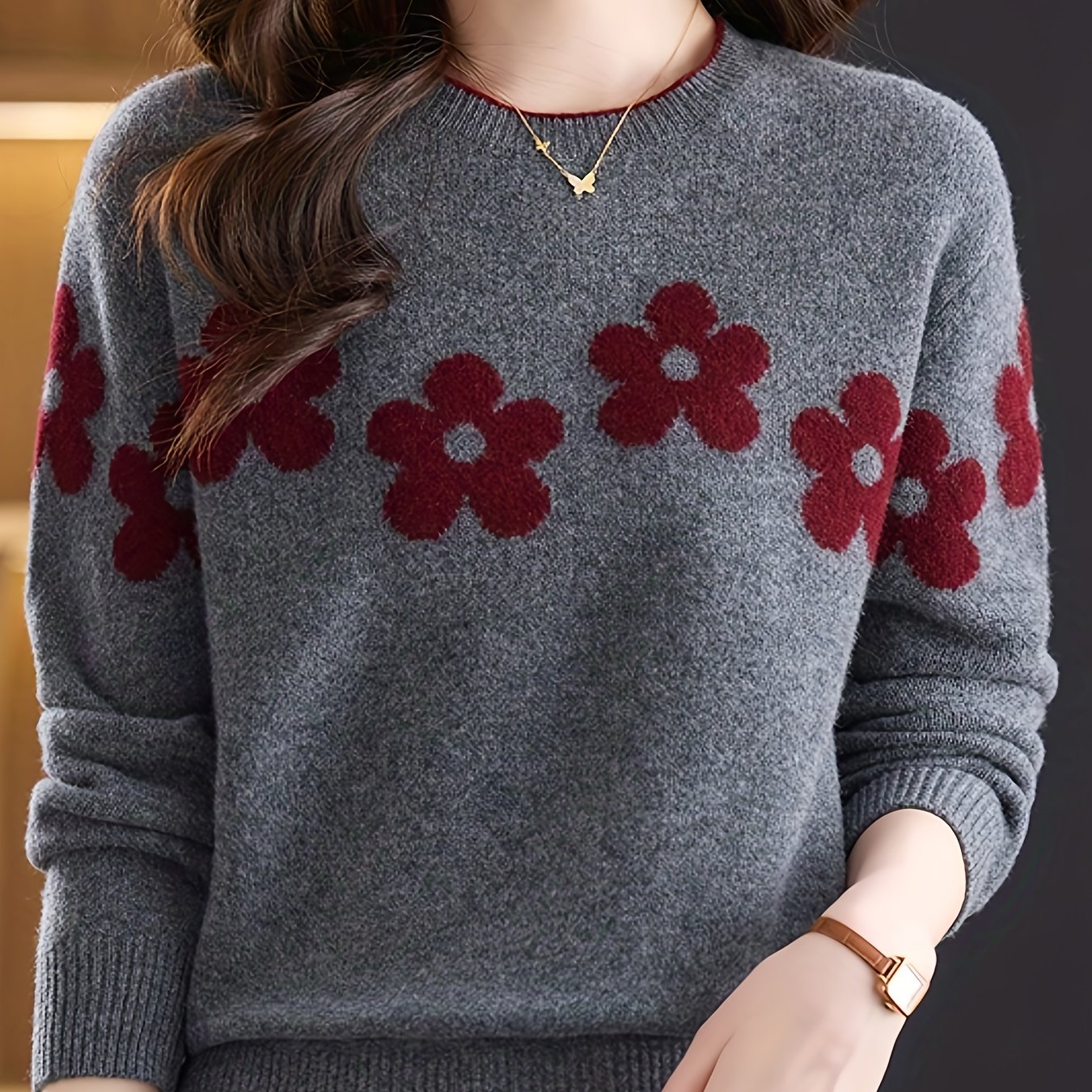 새로운 크리스마스 사슴 프린트 따뜻한 니트 긴팔 스웨터 풀오버 탑 라운드넥 캐주얼 어글리 블라우스 크리스마스 스웨터 후드티
