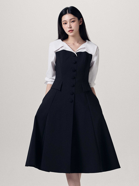 [크로커다일레이디] 정장 벨티드 플레어 원피스_CLCSOP101