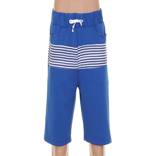 [옷자락]여자 버뮤다 고무줄 파랑색 트랙수트 넓은 면팬츠 반바지