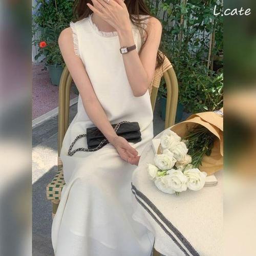 홍언목요 여름원피스 여성스러운 바캉스룩 주름 무지 롱 원피스