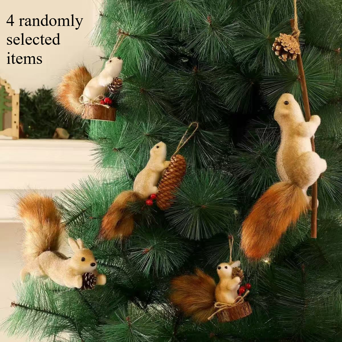 TEMU 4개 귀여운 사실적인 다람쥐 장식 - 축제 분위기의 크리스마스 트리 장식, 전원 불필요, 내구성 좋은 폴리에스터 혼방, 파티 & 야외 디스플레이에 적합, 크리스마스 장식, 크리스마스에 최고