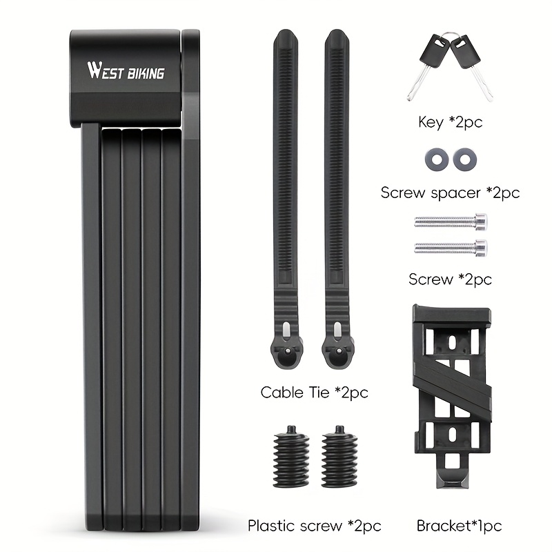 TEMU 웨스트 바이킹 휴대용 접이식 자전거 자물쇠, 알루미늄 합금, 자전거, 스쿠터, 전기 자전거, 바니시 마감, 노브 제어, 미충전, 2개의 키 포함 - 블랙|전기자전거|전기스쿠터