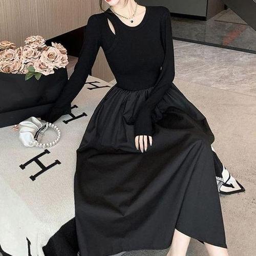[셀러허브_여성트랜드패션]여성 원피스 모임 파티 페이크디자인 올블랙 A라인