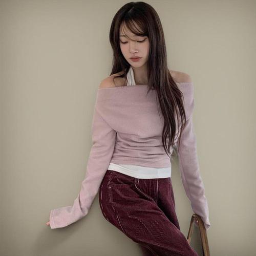 [미라클세븐]여성용 슬림핏 오프숄더 겨울 니트 파티 티셔츠