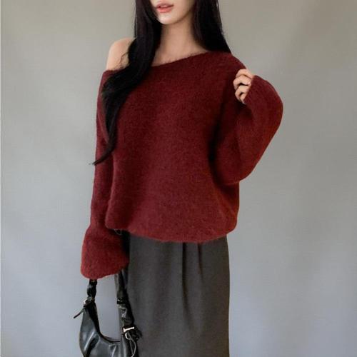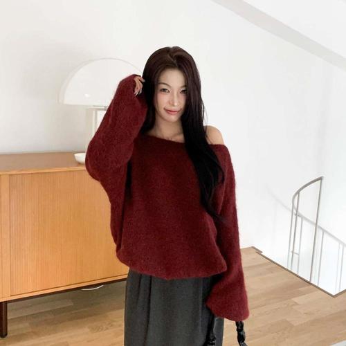 [미라클세븐]여성 오프숄더 겨울 니트 파티 티셔츠 보트넥