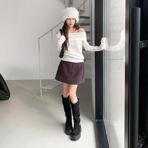 [미라클세븐]여성 오프숄더 겨울 니트 티셔츠 보트넥 파티룩