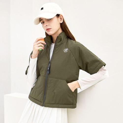 [큐오지]골프 하이넥 자수 패딩 반소매 집업 점퍼_2color