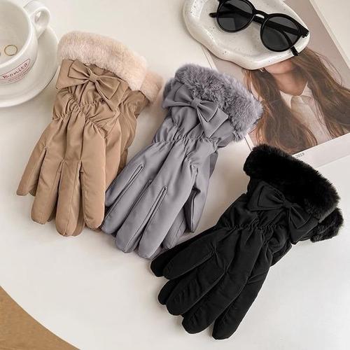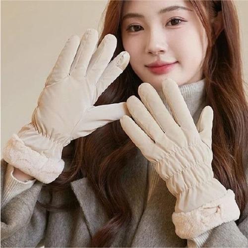 NY20 따뜻한 기모 여성 겨울 리본 패딩장갑 스마트폰터치 방한장갑