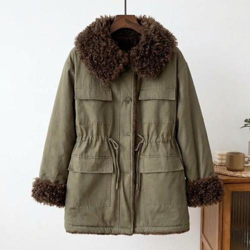 ANYOU 겨울 패딩 여성복 루즈핏 보온 퍼 칼라 패딩 코트