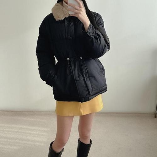 여성 여자 겨울 허리스트링 퍼카라 하프 패딩 점퍼 아우터 3color