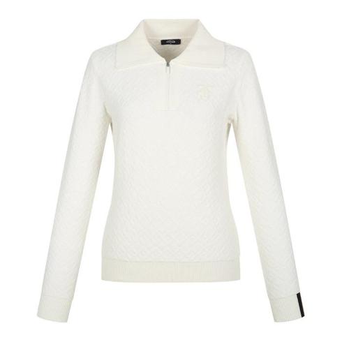 [팬텀]가을 여성 자가드 패턴 카라 반집업 니트 / 221D3SR292_WH_IC