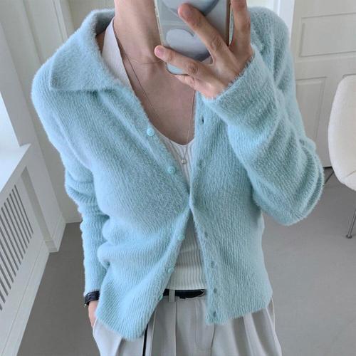 [유야]여성 카라 단추 퍼 니트 가디건 앙고라 -FVC0222- 가을 겨울