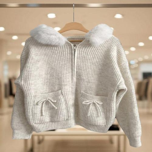 여성 퍼 2WAY 스웨터 트리밍 헤어리 가디건