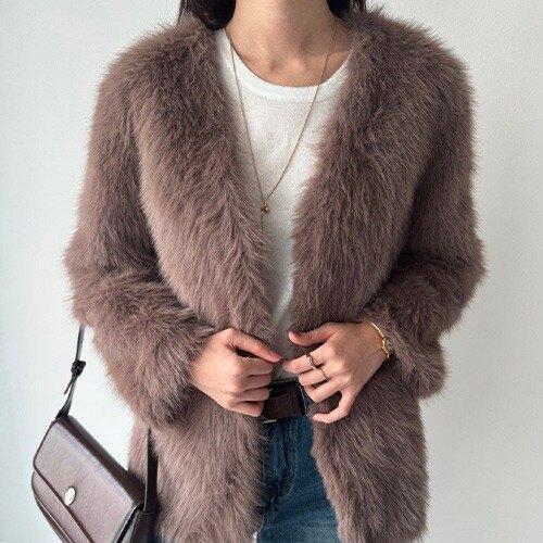 시온 여성 앙고라 퍼 니트 가디건