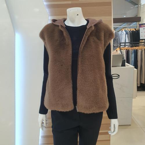 [유야]여성 단추 브이넥 퍼 조끼 밍크 베스트 -FVE0028- 겨울