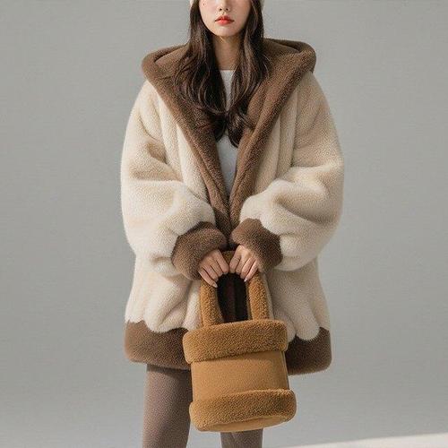 CBHV 여성 밍크 코트 따뜻한 뽀글이 아우터 옷깃 퍼자켓