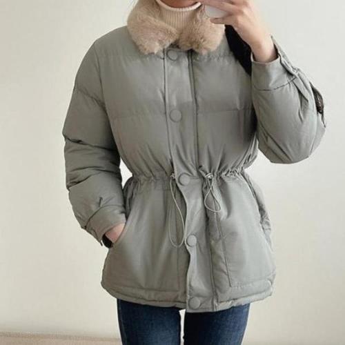 [다잇템_패션]여성용 하프 패딩 벨티드 퍼카라 이중클로징