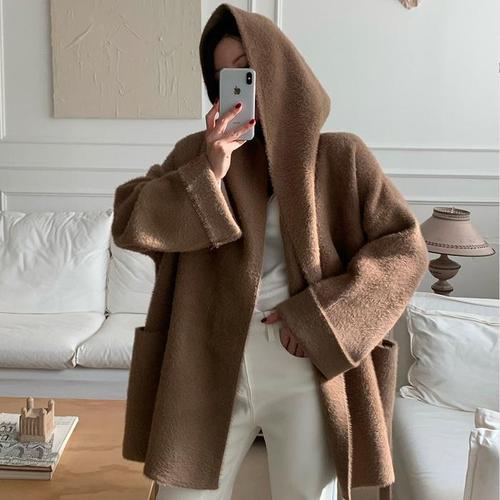 여성 망토 혁대 퍼 후디 하프핏 코트 FW 코트