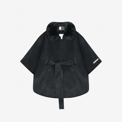 [빈HU] (BZ64CT01BK) 블랙 퍼 케이프 울 코트