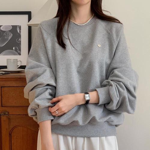 |KSTA0BA|여성 오버핏 퍼프 소매 나그랑 맨투맨 백라벨 봄 티셔츠